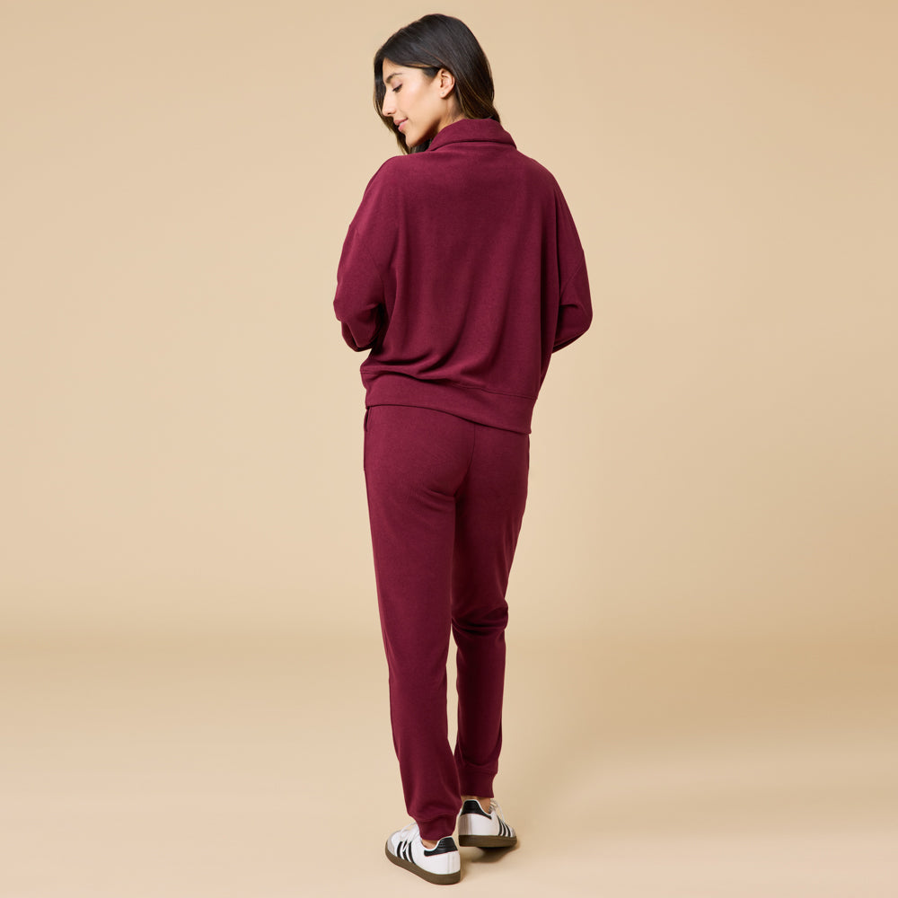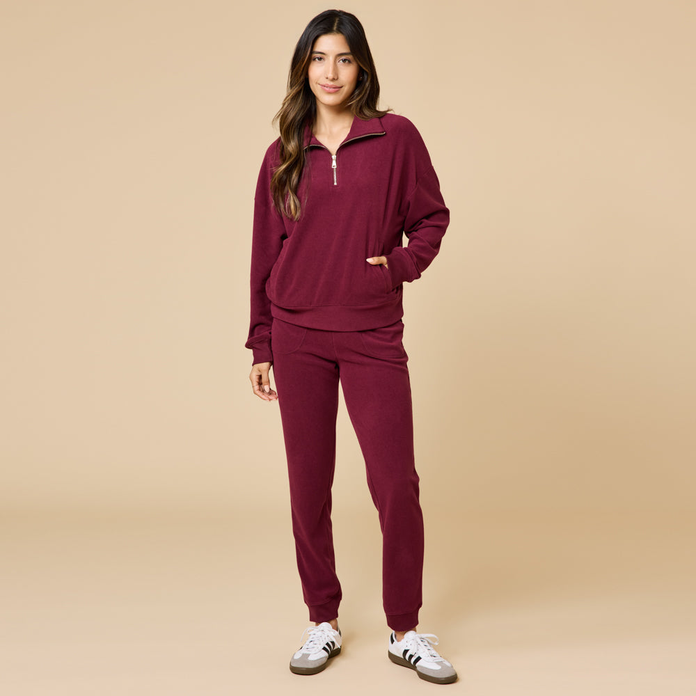 Vintage Velvet 1/4 Zip with Jogger Pant - Cherry Cola