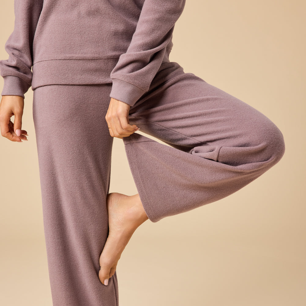 Vintage Velvet V-Neck with Wide Leg Pant - Driftwood