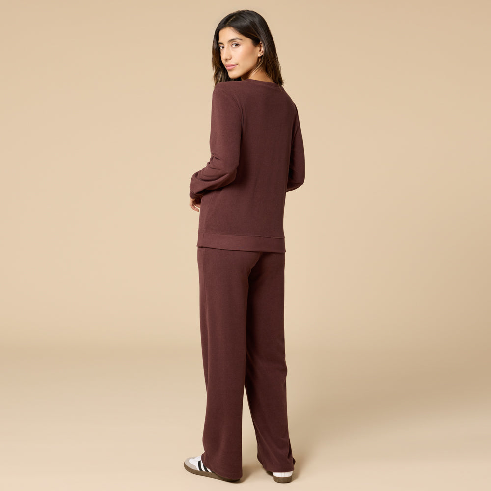 Vintage Velvet V-Neck with Wide Leg Pant - Espresso